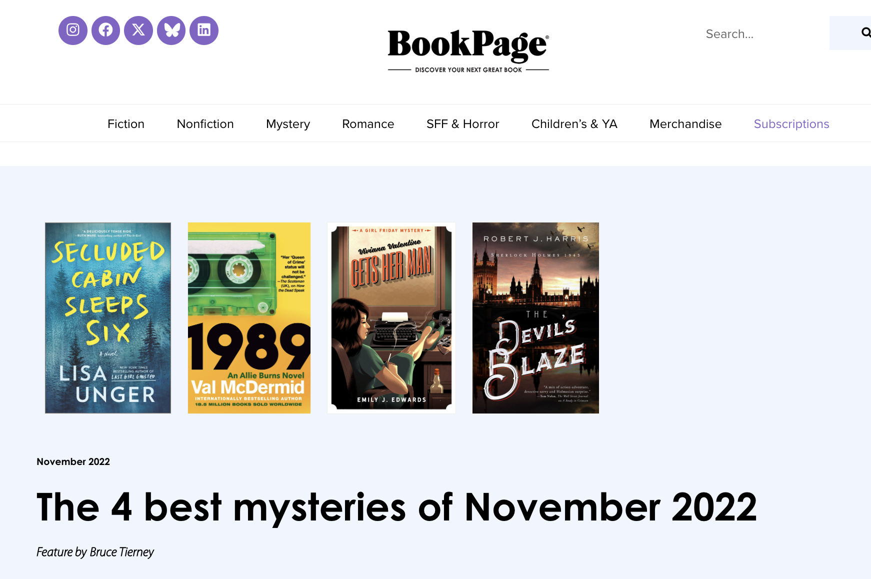 - The Four Best Mysteries of November 2022, BookPage (11/2022)