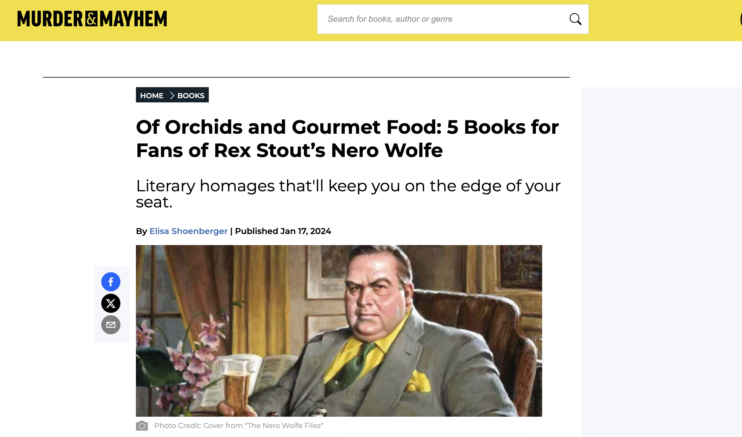- Of Orchids and Gourmet Foods: 5 Books for Fans of Rex Stout’s Nero Wolf, Murder + Mayhem (01/17/24)